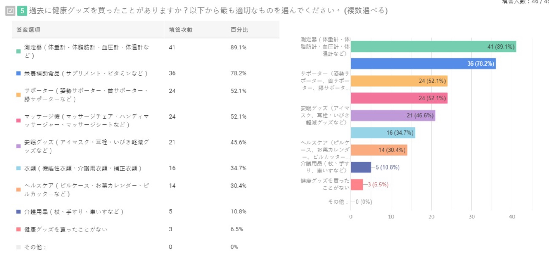 | 目的: | 健康グッズの使用状況を調査するため。 |