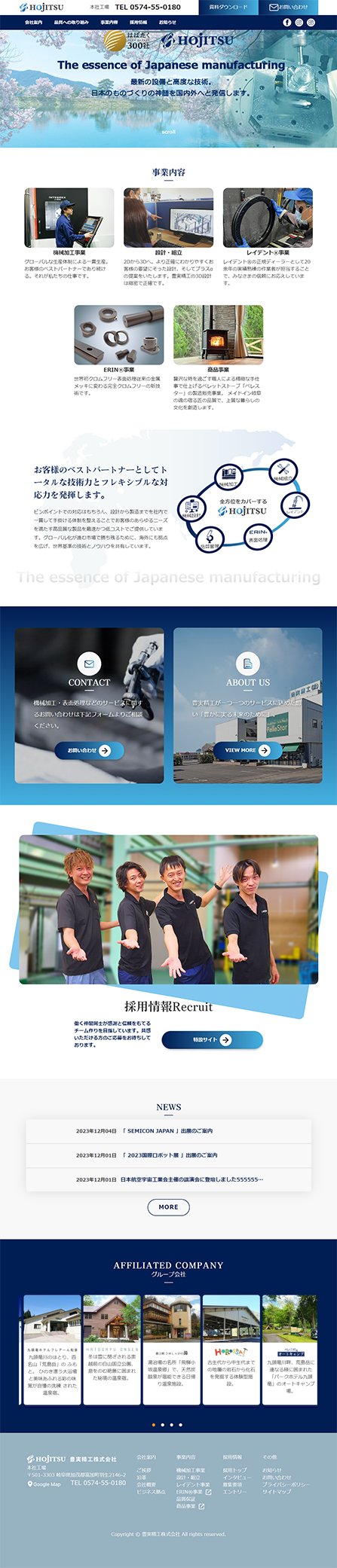 グループ会社のレイアウトも全体を映るより、1列に変更し、読みやすくように仕上げました。