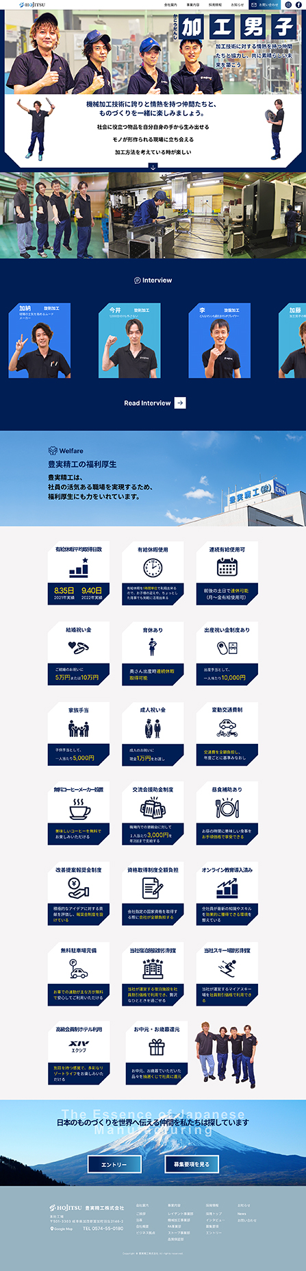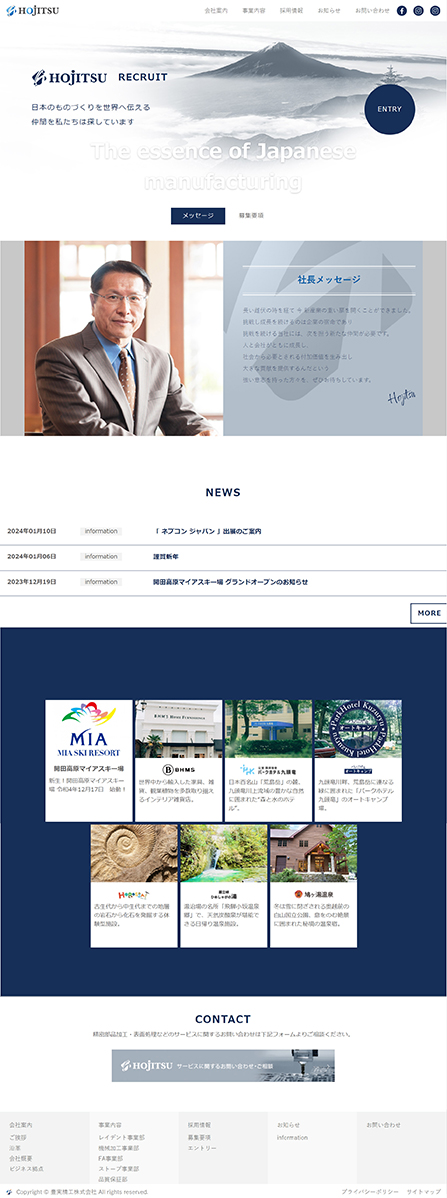 在招募情報的部分,為了讓網頁更加活潑,加入了在滑鼠移入後就像前後切換照片一樣的動畫,增添了一番趣味。
